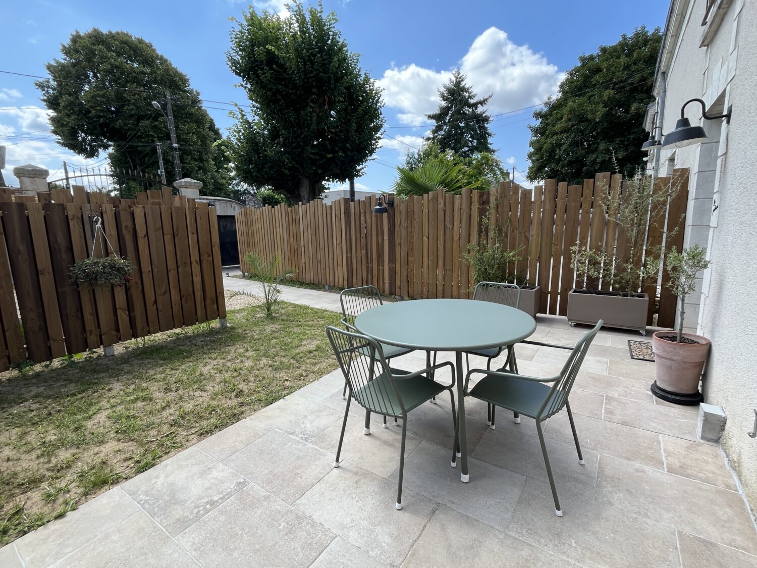 A l’extérieur : terrasse aménagée avec son mobilier de jardin.